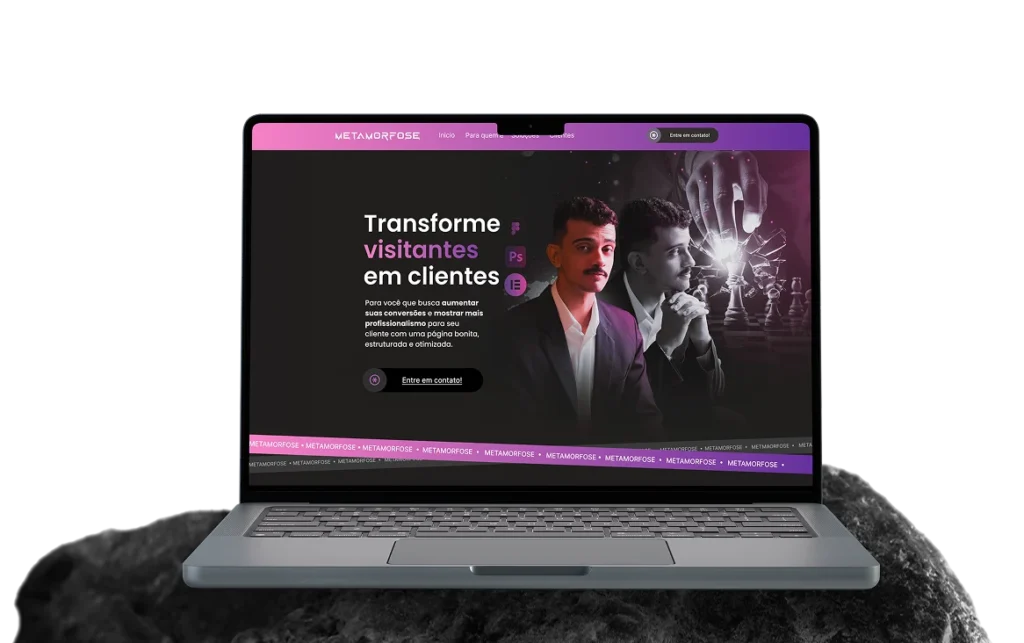 Qual dessas páginas transmite mais confiança e valor? Uma delas passou pela Metamorfose. A outra… talvez pareça com a sua hoje.